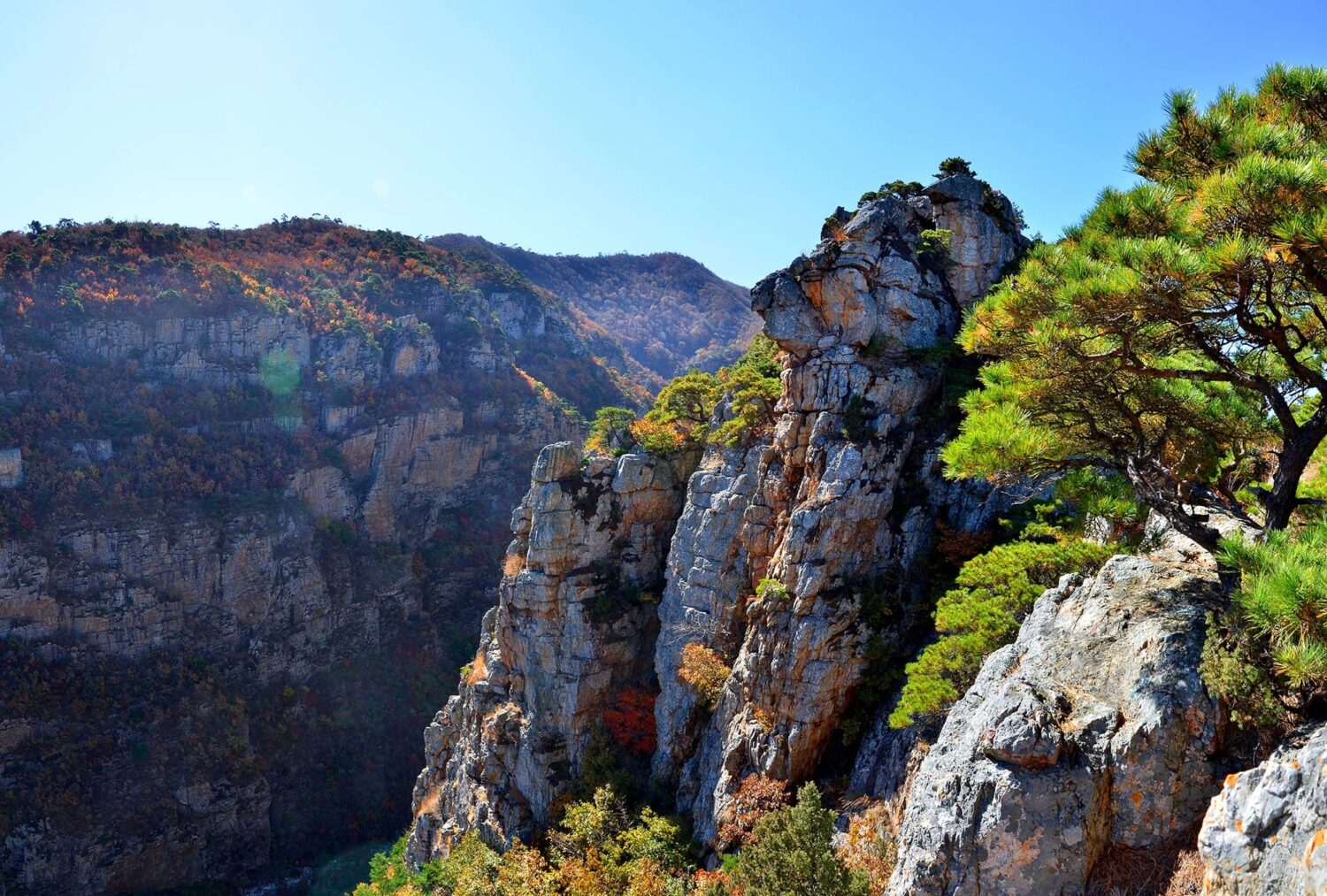 Это гора Чансу – одна из знаменитых в КНДР гор. Она гордится красивым пейзажем ущелий.