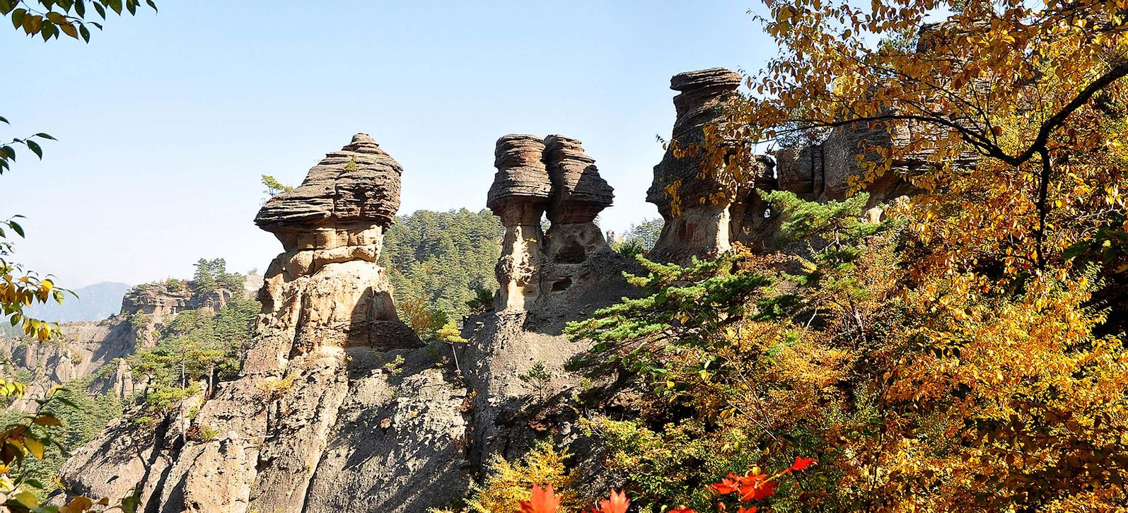Причудливые скалы в горах Чхилбо умножают необычную красоту горы.